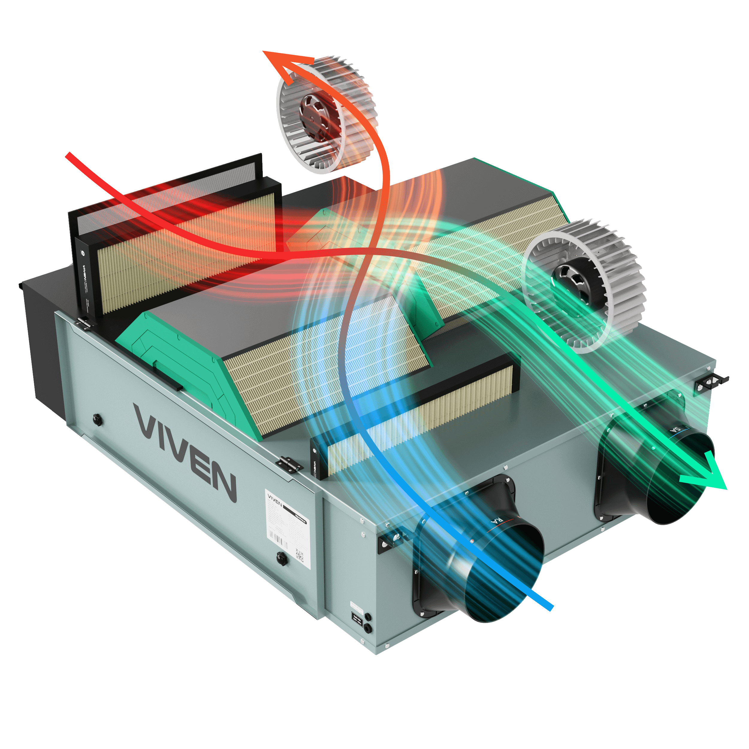 Các máy VV-C1 đều sử dụng các bộ trao đổi nhiệt-ẩm ngược chiều hiệu suât cao với công nghệ sàng phân tử từ Mỹ. Dòng khí đi ra được dùng để điều chỉnh nhiệt độ và độ ẩm của dòng khí đi vào, giúp đưa không khí ngoài trời đi vào tới sát nhiệt độ và độ ẩm của không khí trong nhà. Màng trao đổi nhiệt-ẩm cho phép hơi ẩm đi qua tự do nhưng lại hoàn toàn kín đối với các thành phần khác trong không khí. Hoạt động của bộ trao đổi nhiệt-ẩm không chỉ giúp không khí vào nhà ở nhiệt độ và độ ẩm dễ chịu mà còn có thể giúp tiết kiệm hàng triệu đồng tiền điện điều hòa mỗi tháng