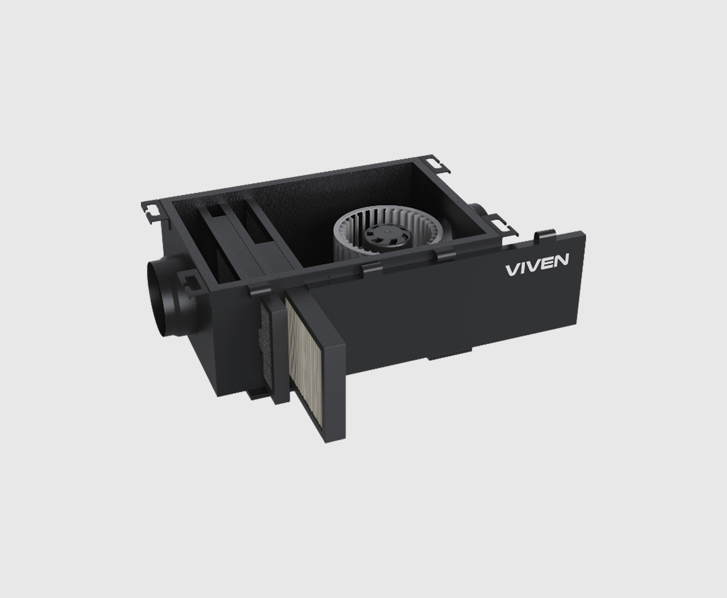 Giống như tất cả các máy thông gió khác của Viven, VV-FF được trang bị màng lọc HEPA13 (cấp độ y tế) của 3M, Mỹ, lọai bỏ 99.95% bụi. Bên cạnh đó, màng lọc sơ bộ carbon hoạt tính giúp lọai bỏ bụi kích thước lớn và các khí độc, mùi trước khi không khí tiếp xúc với màng lọc HEPA13